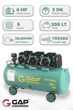 Hava Kompresörü Yüksek Emişli Yağsız Teknoloji 200 lt GPY1500x3/200 adet